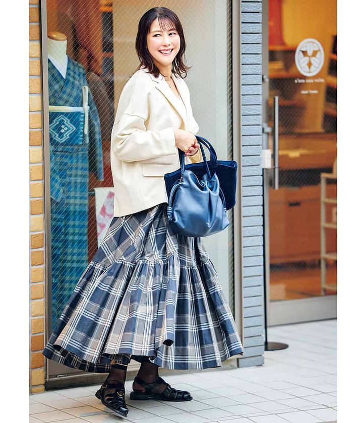 通勤服では、気持ちがアガるブランド小物を取り入れています。ロエベのバッグやプラダのサンダル、WATAのサブバッグなど、娘たちの学校イベントでも活躍してくれるベーシックな色味や形のものを選んでいます。今年の娘の小学校の卒業式には着物で参列しようと思っており、この仕事の醍醐味を味わう予定です。
