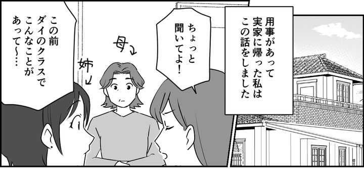 息子の話を聞いて全貌が見えてきました。女子たちが話を盛って男子をいじめる。ついでに、担任も女性だから女子の味方をする、そんな学校の在り方が見えたのです。許せません。翌日、徒歩5分の距離にある実家へ母に荷物を渡す予定があったので1人で行ってみると、姉も用事があってちょうど来ていました。