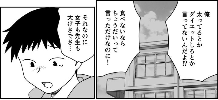 私ミキ(30代後半)には、中1の息子ダイと中3の娘アスカがいます。旦那は単身赴任をしているので、今は3人での生活。ただ、近くには実家もあり、何かと頼りになっています。今日は息子の担任の先生からお叱りの電話がかかってきました。なんでも、息子が給食のチキンをクラスの女子からもらおうとしたところ、ほかの女子たちが変な正義感を出して、ひと悶着あったようです。それを真に受けた担任の先生が「拒食症になったらどうするんだと叱った」というのです。私にしてみれば、かなり大げさな話だと思います。