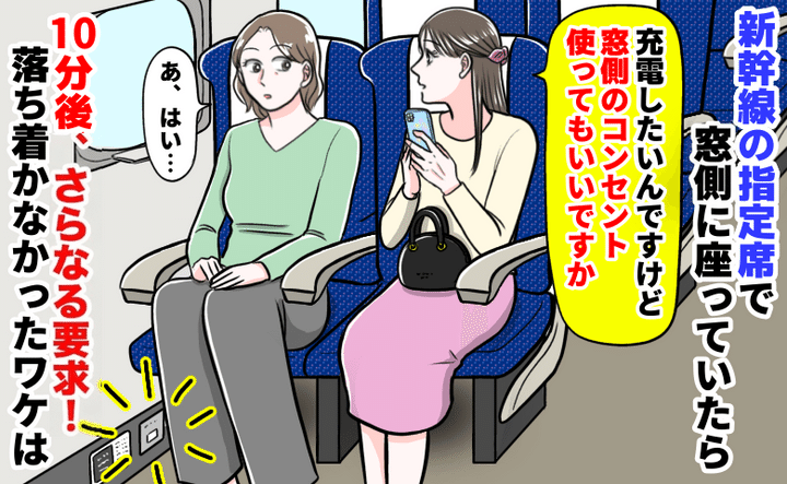 新幹線で隣の女性「充電させて…」窓側のコンセントを譲った10分後、エスカレートした要求に後悔のワケ