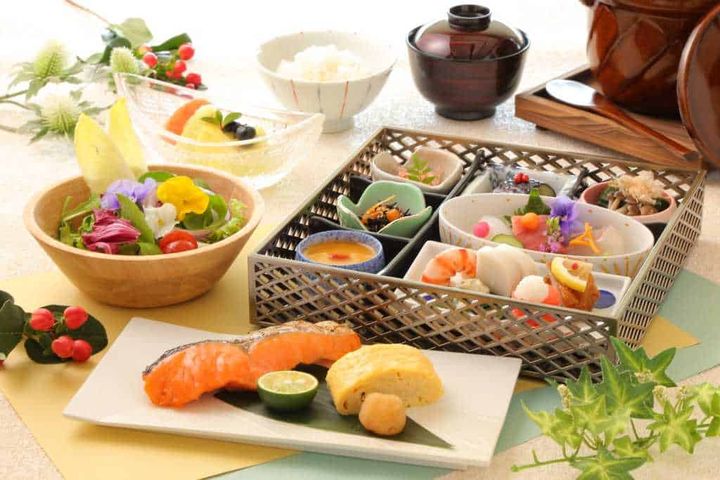 夕食はプライベート感のあるダイニングで提供されます。個室またはパーテーションなどで区切られた空間になっているため、周囲を気にせずゆったりと食事を楽しめます。飼い主の料理は、地産地消の食材をふんだんに使い、日本料理を現代的なコースに仕立てた「モダン懐石」。メインは神奈川県産のブランド和牛や鮑などから選べる、贅沢なコースです。器にもこだわった美しい料理が並びます。