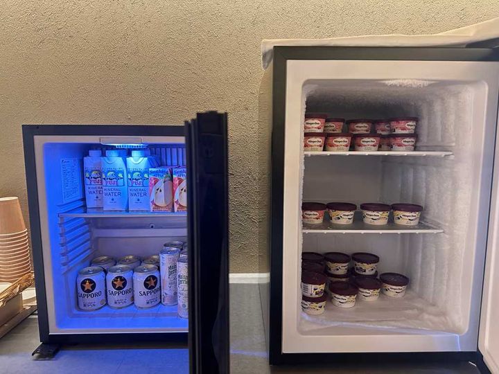 ラウンジにはコーヒーや紅茶に加え、ビールなどの用意があり、滞在中いつでも利用ができます。アイスクリームが食べ放題なのも嬉しいサービス。
