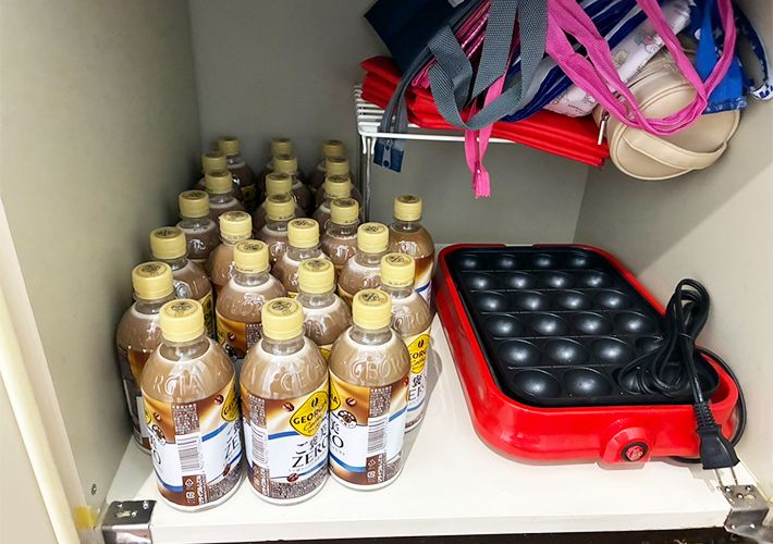 ただし、積み上げすぎると下のドリンクが重さで潰れてしまうほか、つっぱり棒が外れる恐れがあるため、様子を見ながら無理のない範囲で積み上げるようにしてください。