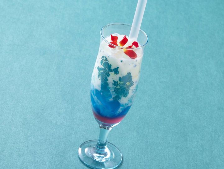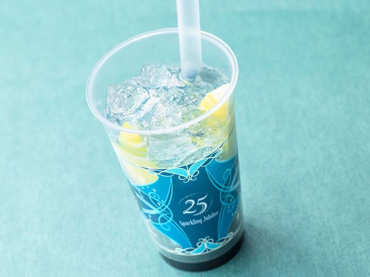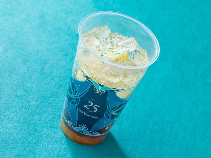 ホライズンベイ・レストランとカフェ・ポルトフィーノで味わえる25周年限定ドリンク。よく混ぜると、全体がジュビリーブルーカラーのような青いドリンクに! キラキラしたラメが舞って、お祝いにぴったりな華やかさです。