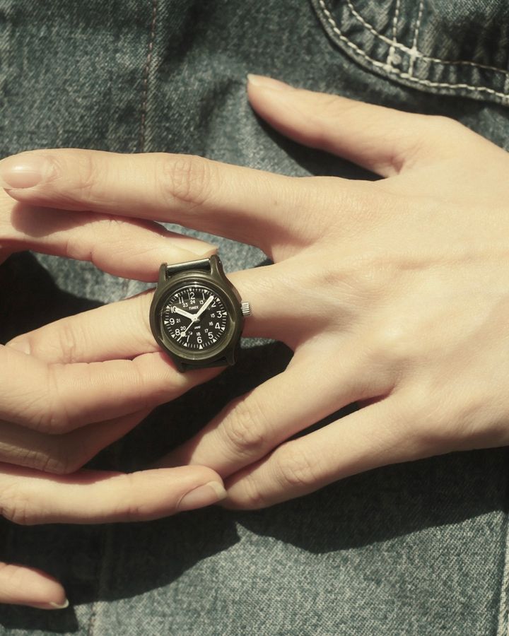 ファッションラバーの間でひそかに注目を集めているのが、アクセサリー感覚で楽しめるリングウォッチという存在。なかでも「TIMEX(タイメックス)」と「BEAMS BOY(ビームス ボーイ)」が手がけたリング型の「Original Camper(オリジナルキャンパー)」は、ミリタリーウォッチの無骨さと、ジュエリーの繊細さを併せ持つ稀有なアイテム。