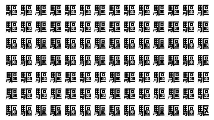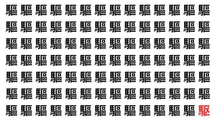 たくさんの「驅」の中に、よく似た別の漢字が1文字だけ隠れています。
