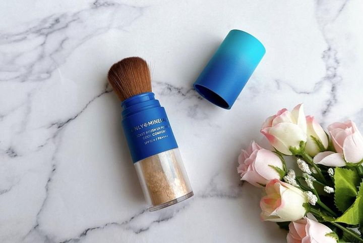今回紹介するのは、メイクの上から塗りなおせるUVカットパウダー。ブラシとパウダーが1つになっていて持ち運びにも便利な形状です。