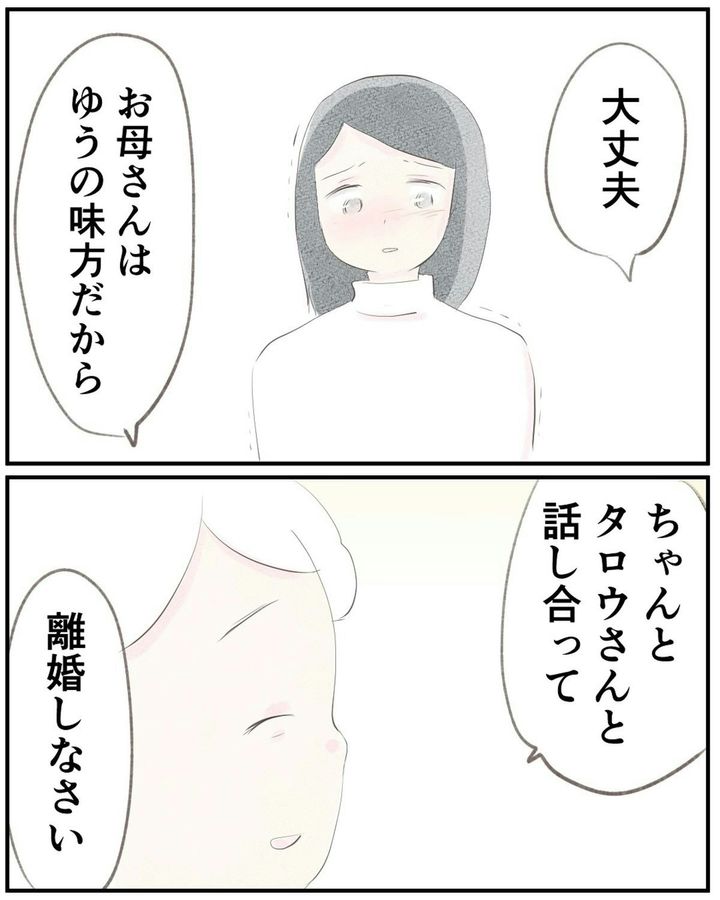 さらに、娘にとって父はこわい存在へと変貌。このままではダメだと思い、ゆうさんは実の母へ相談します。