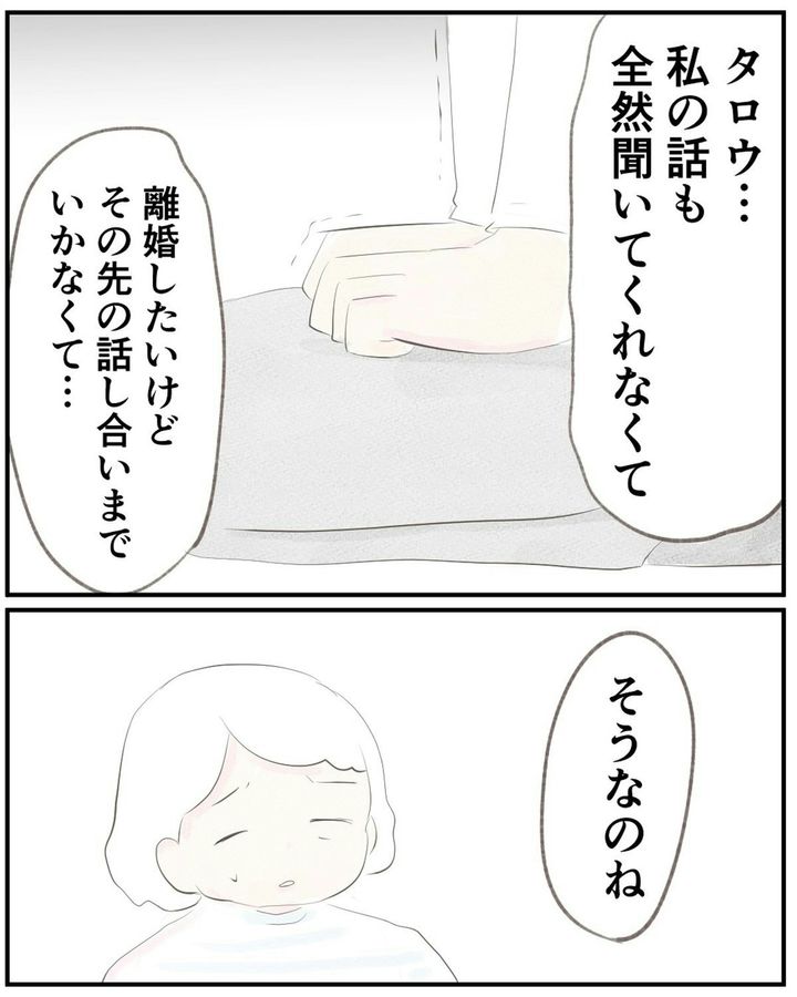 自分がDV被害者だと気づいたゆうさんは、離婚に向けて動き出します。しかし、妊娠を機に仕事を辞めてしまったため、貯蓄はありません。誰にも頼ることができず、ただひたすらに「離婚したい」と訴え続ける日々…。