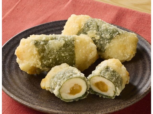 鶏ささみで梅と大葉を巻いて、薄衣で揚げました!