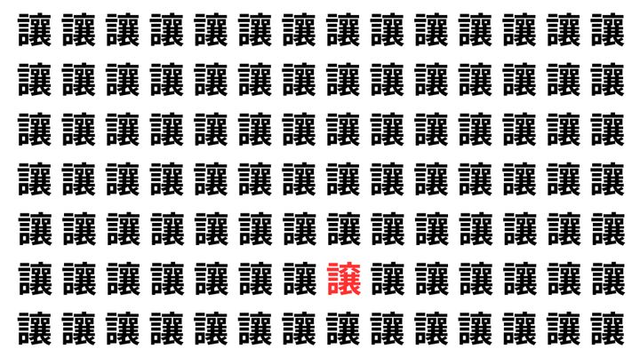 たくさんの「讓」の中に、よく似た別の漢字が1文字だけ隠れています。