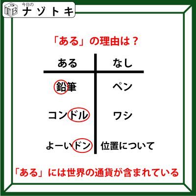 あるなしクイズです!「鉛筆にはあってペンにはない。コンドルにあってワシにない」共通点はなに?【難易度LV2.・甘口】