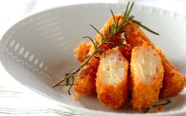 おしゃれな一皿を作りたいならこちら。茹でたタケノコを生ハムで巻いて揚げる、洋風のフライです。生ハムの塩気がタケノコのほのかな甘みを引き立て、ワインとの相性も抜群。パーティーのオードブルに出せば、「これ何?」と会話も弾みそうです。
