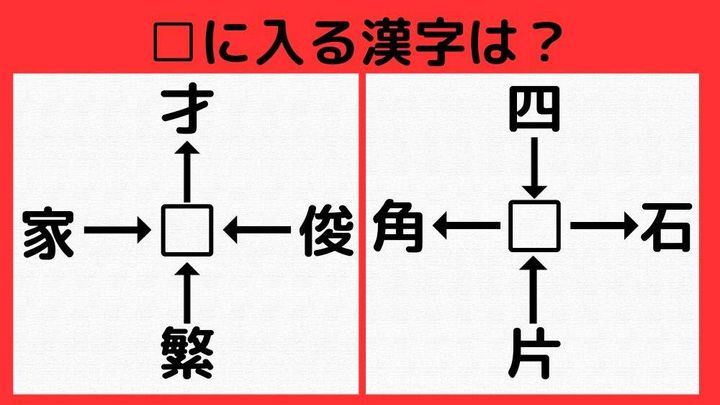 2. 【漢字パズル】□才、俊□、繁□、家□ □に入る漢字は何…?