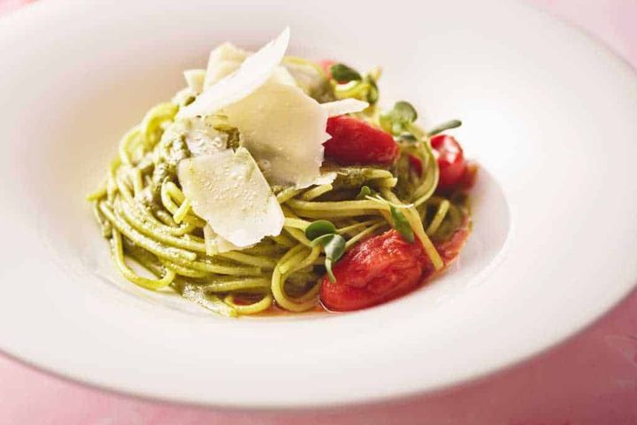 ・スパゲッテーニバジルペーストチェリートマトパルメザン