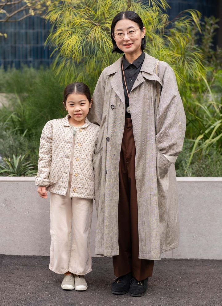 NAME:安武恵理子さん&しゅかちゃん・7歳ついマネしたくなるような上品さ漂うタウンコーデが素敵♡ ママは軽やかな『シーオール』のアウターでエフォートレスなトレンチスタイル。しゅかちゃんは、控えめながらキルティングのお花柄アウターを引き立てる大人っぽい着こなし。やわらかなカラーで全体をまとめ、都会的でやさしいムードに仕上げた母娘コーデ。item▼