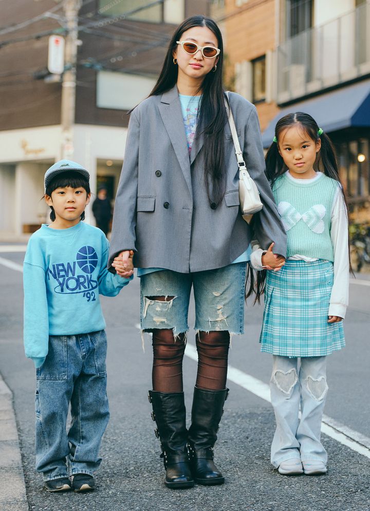 NAME:ayaさん&uraちゃん・9歳、gakkunくん・5歳個性たっぷりなデニムを取り入れた親子コーデを披露してくれたayaさんファミリー。ママはクラッシュ感が魅力のジョーツを、uraちゃんはハートのパッチワークが可愛いデニムパンツを、gakkunくんはトレンドのカーゴ風デニムパンツをオン。トップスは淡いブルーで揃えることで、全体をやわらかくまとめているのもポイント。item▼