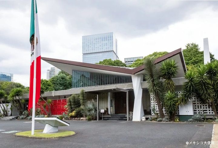 日本の大江宏と、メキシコ人建築家のロレンソ・カラスコとギジェルモ・ロッセル・デ・ラ・ラマによって設計された「駐日メキシコ大使館」。Vの形の屋根が翼のようで、まさに愛称「カサ・デ・メヒコ」(メキシコの家)が翼を広げて飛び立つような姿が素敵だなあと思っていました。外観や内観の写真から、ハイサイドライトからの光が空間に光と影をもたらしているように想像していて、今回のツアーは敷地内から外観を解説付きで見学できるとのことで期待しています! 「国立能楽堂」などモダニズムと日本の美を融合させた大江宏が、メキシコの建築家たちと一緒に、メキシコの美意識とどのように向き合いこの建築をつくったか?設計のプロセスなども気になっています。