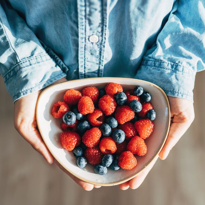 ラズベリーも食物繊維が多いことで知られており、ブラックベリーと同じく1カップで8gの食物繊維が摂取可能。食物繊維には水溶性と不溶性の2種類があるけれど、ラズベリーにはその両方が含まれている。そのため、ラズベリーは「血糖コントロールと腸の健康にとても良いです」とローレンツ氏。