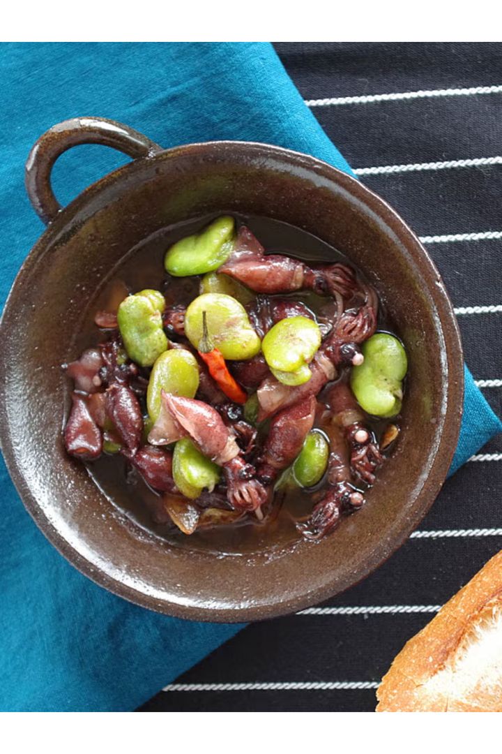 10分でサッと作れるお手軽つまみ。そら豆やほたるいか、アンチョビ、にんにくのだしが溶け込んだアヒージョの香りに食欲をそそられる。バゲットに付けて食べれば、ワインが止まらなくなること間違いなし!
