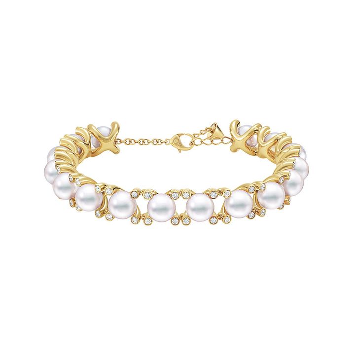 きゃしゃなプロングと、ボリューミーなパールが絶妙なバランス。ネックレスとピアスの展開もあり、合わせて身に着ければより華やかに。ブレスレット“プロング”[YG×ダイヤモンド×アコヤ真珠]¥5,280,000(Tasaki/タサキ) Hearst Owned