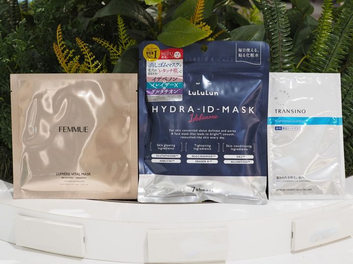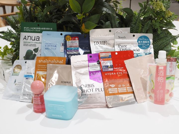 HABA スクワランマスク アクアチューニング 7枚入 880円※ shaishaishai カフェインショット ビタC トーニングマスク 5枚入 1,980円※ ByUR スージンググリーン デイリーアクアセラムマスク V1 7枚入 770円※ Yunth Pure AZ Mask 7枚入 880円※ オルビス オルビス ナノ NC ダイレクトショット マスク 5枚 990円※ ルルルン ハイドラ ID マスク 7枚入 770円※ FEMMUE ルミエール ヴァイタルマスク 6枚入 4,950円※ トランシーノ 薬用ブライトニングフェイシャルマスク【医薬部外品】 4枚入 2,200円※ ネピア 鼻セレブ SKINLISM すこやか肌うさぎ 美容液マスク 385円※ Anua ドクダミ77 ヒアルロン スージングトナーマスク 7枚入 770円※ ルルルン ハイドラ アイ フィラー 6回分12枚入 1,320円 NAIA ライスエッセンスグロウマスク 660円※ Biodance コラーゲンペプチドゼリーセラムミスト 2,090円※ MEDIHEAL マデカッソシド ブレミッシュパッド 100枚入 2,860円※ ワフードメイド 酒粕パック ピーチの香り 1,320円※