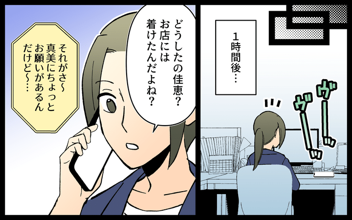 「助けて~」という第一声に何事かと思えば…。渋谷への行き方がわからないって、私に電話をかけるよりもスマホで調べた方が絶対早いし、わかりやすいのに。私が仕事中だろうとお構いなし。佳恵は昔からこういう甘え上手なところがありました。ただ、私たちももういい大人ですし、子どもの親でもありますし、ましてや佳恵は離婚を覚悟しているわけですから、もう少し自立したほうがいいのでは…とモヤモヤします。おまけに、お金が足りないから送金して!? さすがに耳を疑いました…。