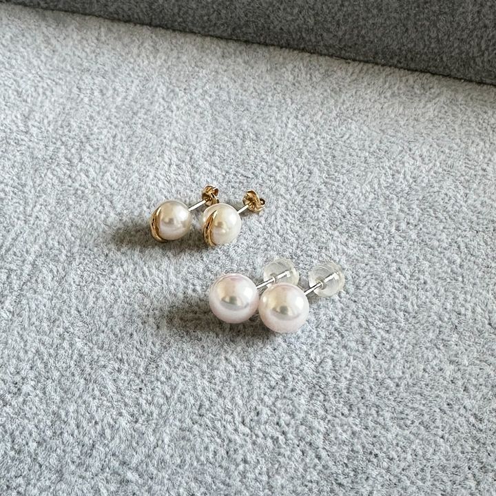 「顔まわりを明るく見せるパールピアスはお着物コーデの定番。品質にこだわって選んだ『天女』の大粒あこや真珠や、『ECRETTE』の小ぶりなあこや真珠にゴールドを組み合わせたスタイリッシュなピアスを使い分けしています」