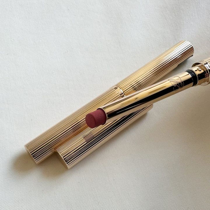 「リップは『エスティ ローダー ピュア カラー シルク マット リップスティック』を愛用。112はピンク系、106はオレンジベージュ系と、着物の色味に合わせてセレクト。マットで落ちにくいのと、スリムな形状で小さなバッグにもすっぽり入るので重宝します」