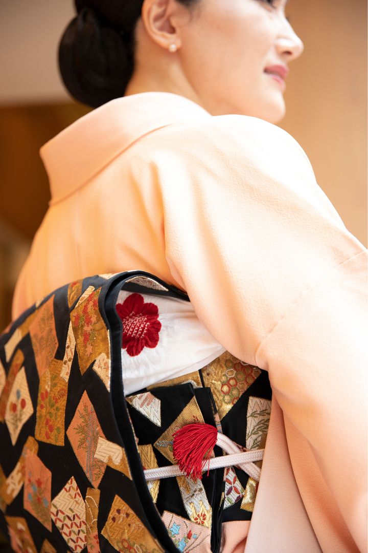 「パーティーやお茶会、仕事など、私にとって着物を着ることは日常です。いつも大切にしているのは、『自分らしく、似合っているか』。着物は今の自分に合うものを新調しますが、そこに母から譲り受けた帯や小物を添えて自分らしいコーディネートを楽しんでいます」