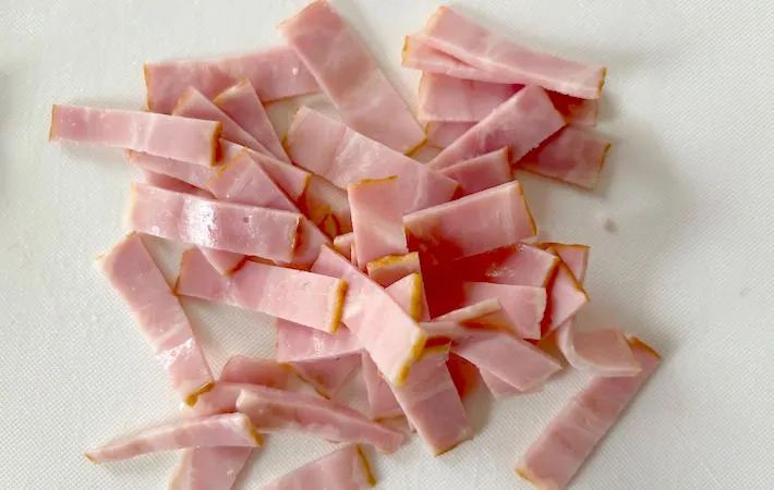 ベーコンは、1cm幅くらいに切っておきましょう。
