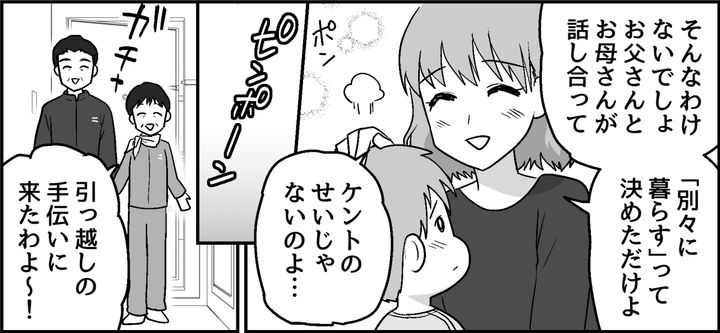 子どもたちは「お父さんは怖いからお母さんがいい」と、一緒に実家に身を寄せることを承諾してくれました。そして引っ越し荷物をまとめていると、インターホンが鳴りました。子どもたちや私のために義両親が手伝いに来てくれたのです。