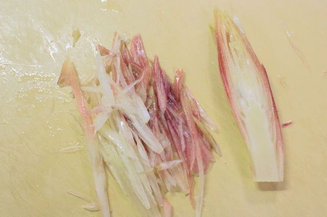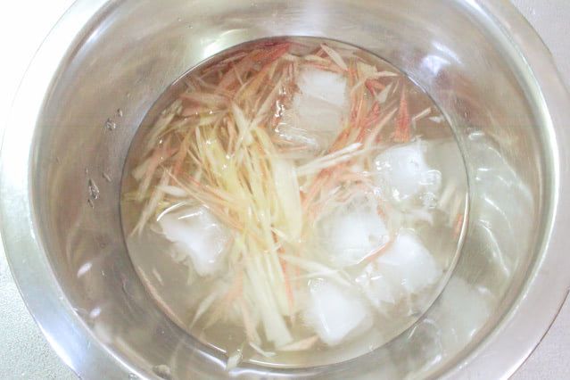 千切りにしてすぐに冷水に放つと繊維がしまって、パリッとした食感になるそうです。