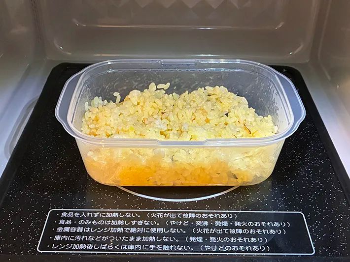 もちろん、フライパンで炒めたものほどのパラパラ感はありませんが、ほどよくほぐれた食感で食べやすく感じました。