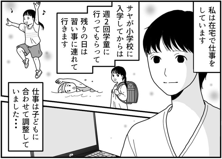 小学校に入学してからサヤは平日週2回学童で、残りの週3日は習い事を入れています。私はその代わり夜に仕事をするなど、子どもに合わせて働き方を調整していました。その日は仕方なく、コハルちゃんも一緒に連れて行きました。
