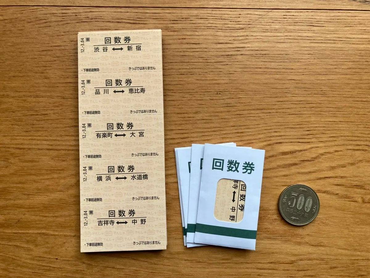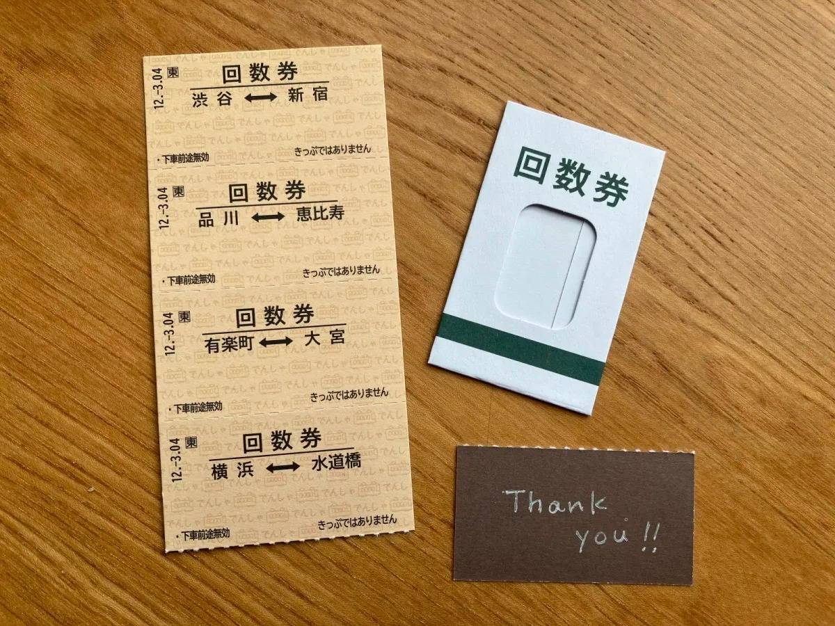 Seria(セリア)の「ミシン目入りメモ 20シート 封筒付き トレイン」は、回数券のような見た目のメモです。