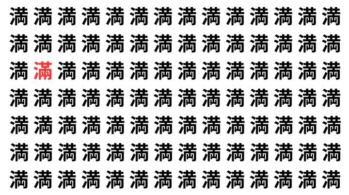 たくさんの「満」の中に、よく似た別の漢字が1文字だけ隠れています。