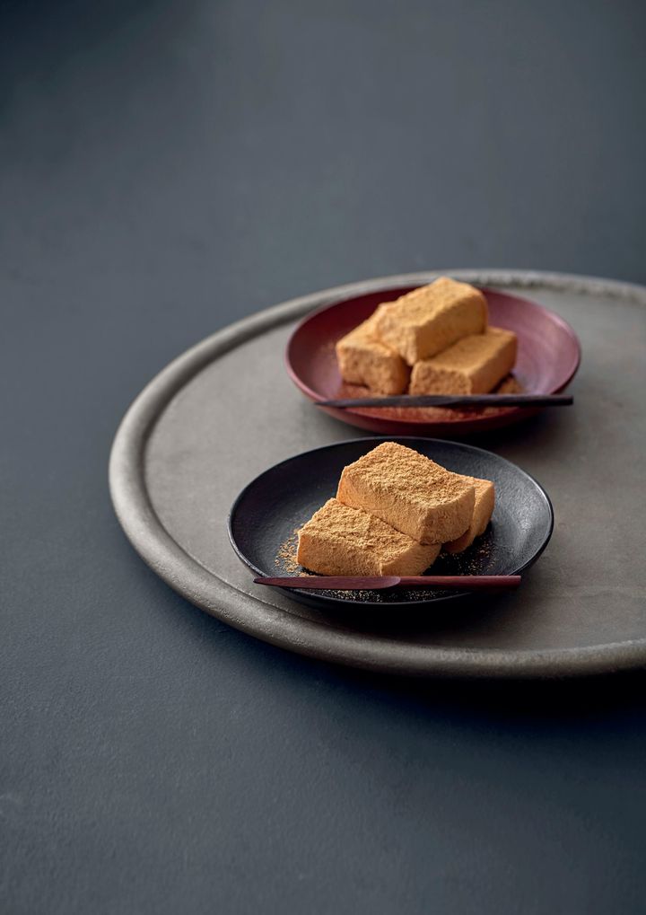 国産の糯米の粉を蒸し、手間暇をかけて丁寧に練り上げた餅は、もっちりとしていてなめらかな無二の食感。香ばしいきな粉をふんだんにまぶしました。古都で長年変わらぬ製法が守られてきた餅菓子は、シンプルでありながら比類なき奥深さがあります。