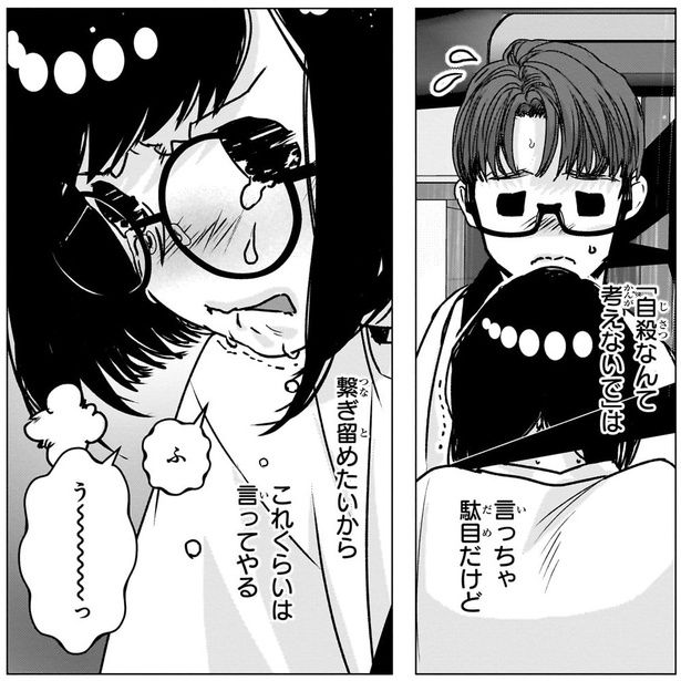 ――反復性うつ病を患っていた朝待先生は、病状が重いときには「電車に吸い込まれそうになったことが何度かあった」と叶先生に話をします。それに対して、叶先生が朝待先生に「絶対私と朔太郎のところに帰ってきて」「人の人生変えておいて、私と朔太郎を放り出そうとすんな」と伝えるシーンは、印象的です。当時の心理状態を教えてください。