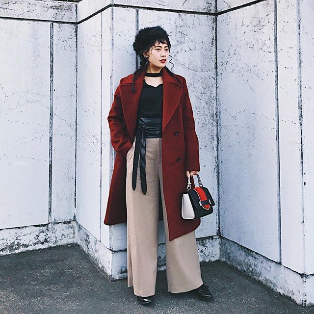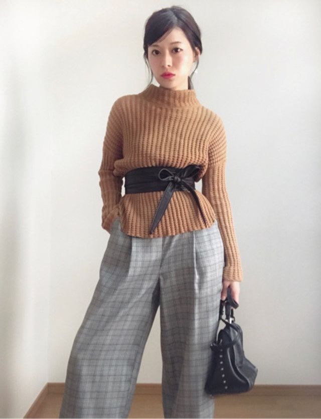 ファッション感度の高いおしゃれなストリートでもサッシュベルトは人気アイテムでした。スナップでは、ブラックレザー調のサッシュベルトとトップスの色味を合わせたおしゃれなスタイリングに。