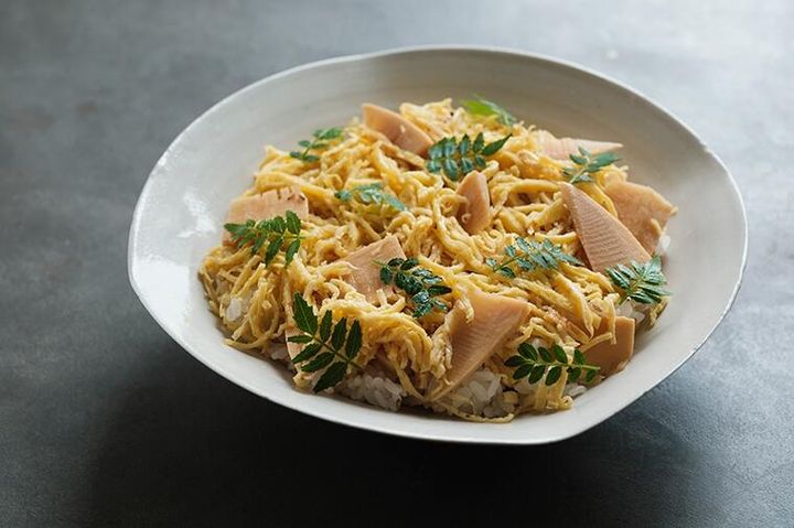 「つくり方に慣れるためにも、まずはシンプルなちらし寿司に挑戦してみましょう!具材は春らしく筍と木の芽、そして錦糸卵。この3つだけで、心も華やぐちらし寿司ができますよ」(真藤さん)