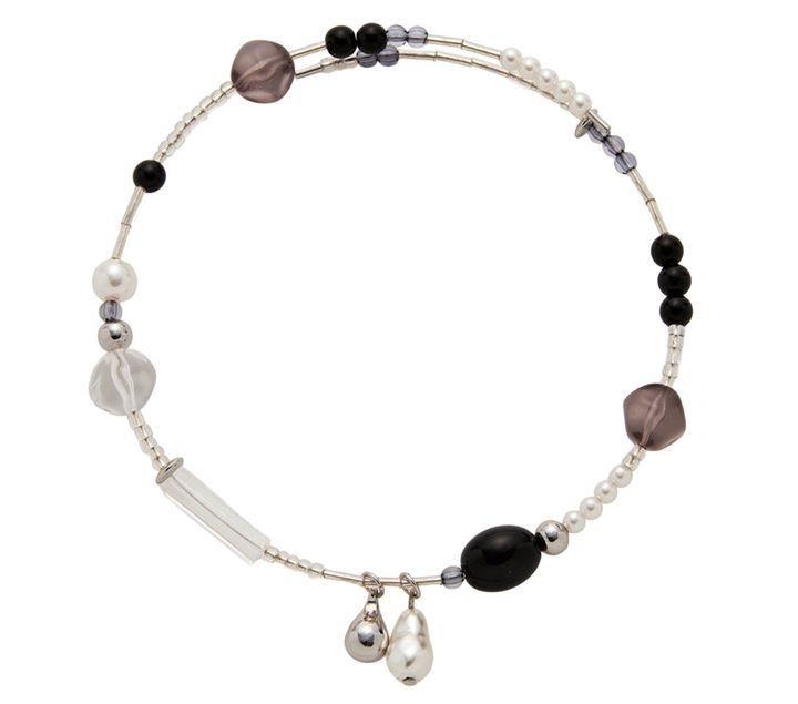 ヌケ感あるマルチビーズのネックレスをコーデのアクセントに。ネックレス ¥2,530 (GOLDY)