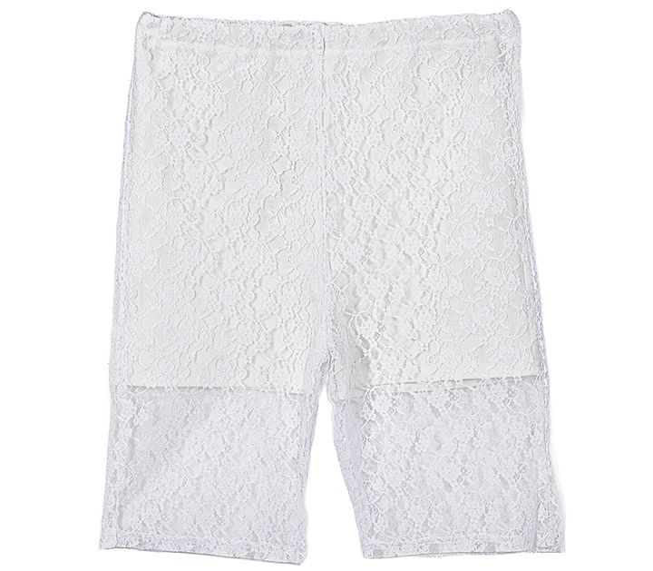 今年っぽいレースのバイカーパンツは、スポーティブなスタイルにも好相性。パンツ ¥1,299(GRL)