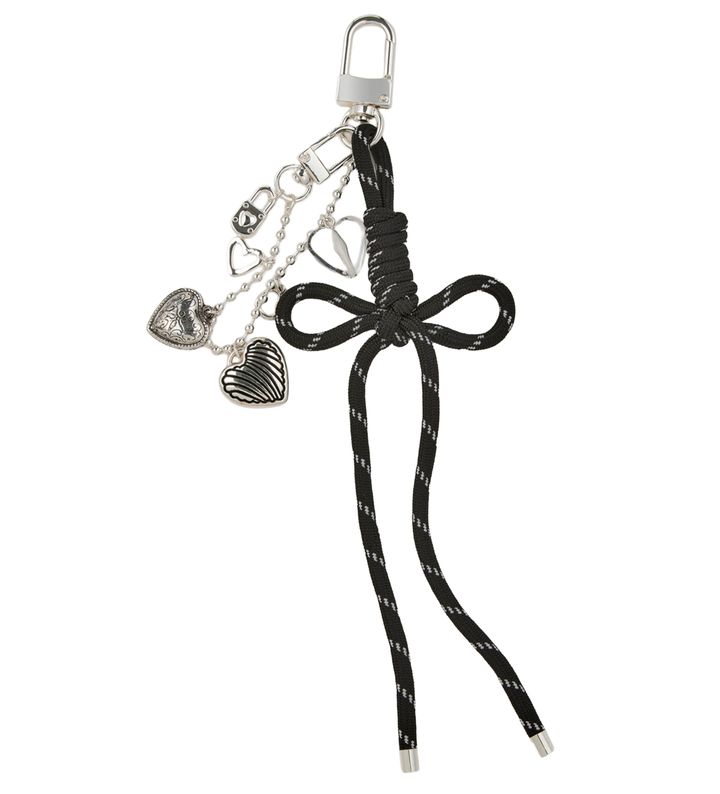 編み紐リボン×ハートモチーフのじゃらづけ感がキュート。チャーム ¥2,200