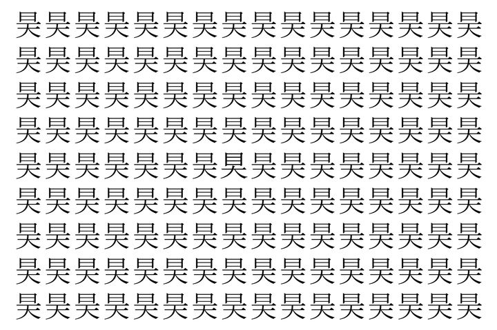 【脳トレ】「昊」の中に紛れて1つ違う文字がある!?あなたは何秒で探し出せるかな??【違う文字を探せ!】