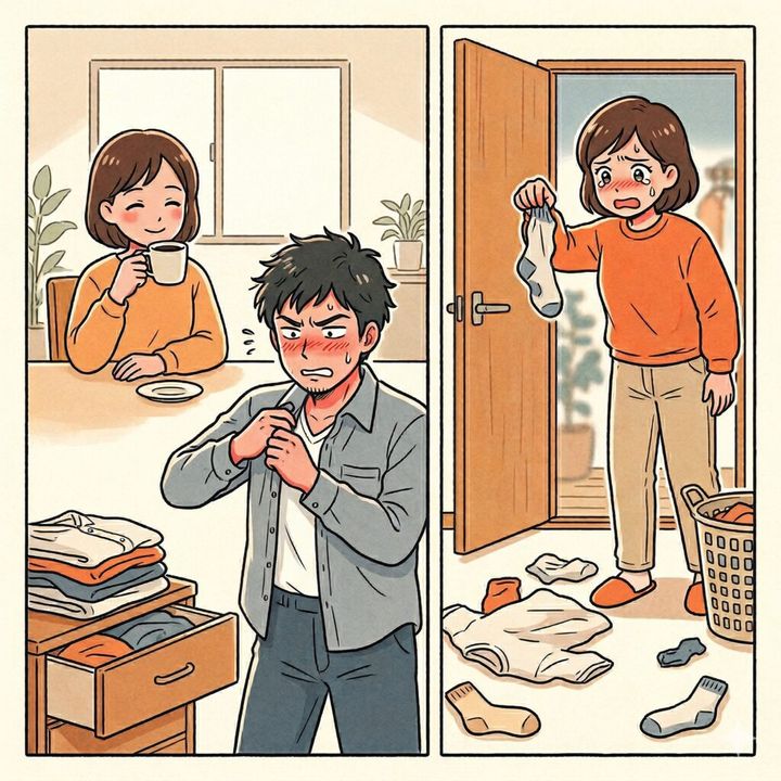 「洗う時に戻せばいいだろ」裏返しのまま洗濯物を置く夫。だが、私の小さな仕返しで態度が一変