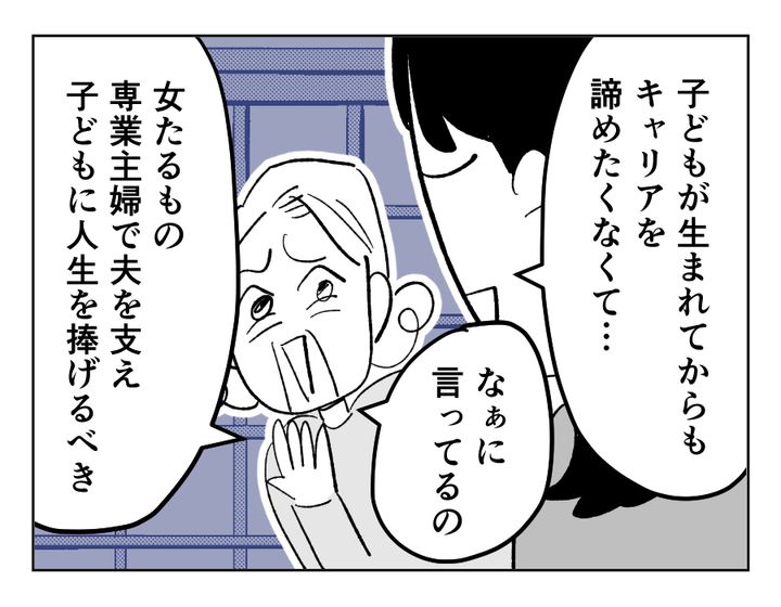 おーーっと……。これはなかなかの価値観押し付け系お義母さんですね。お義母さんにとっては、専業主婦として家族を支え続けた人生は幸せだったのでしょう。しかしその価値観は人それぞれであり、正解も不正解もないのです。アリサさんにはアリサさんの幸せの価値観があるということを認めていただけませんか? お義母さん。