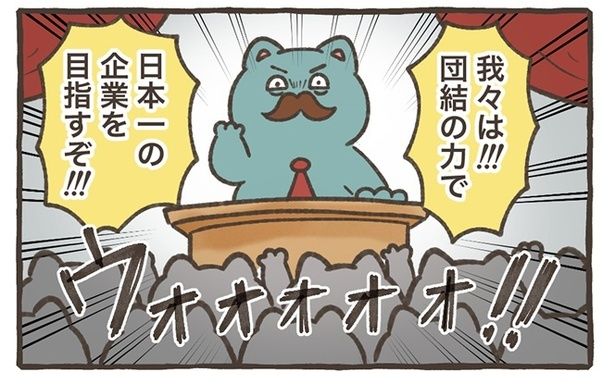 「日本一を目指すぞ!!!」入社式で熱弁を振るう社長。その数日後…/ふまじめ会社員ぬんちゃん