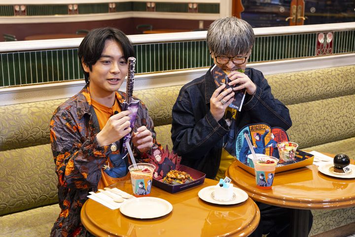 榎木氏はフードについて、「“黒閃”ってトゲトゲしているイメージですが、“黒閃!チキンピザブレッド”は、柔らかい。黒閃だけど優しい。」「(呪術高専のグレープフルーツ・レモネードを飲んで)1年ズって青春なんですね、甘酸っぺぇ!」とコメント。