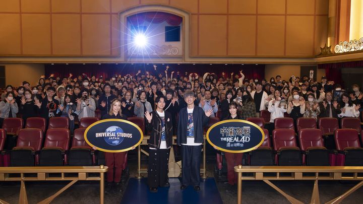 特別招待されたファン140名とともに、“呪力”を全身で超リアルに体感できるアトラクション『呪術廻戦・ザ・リアル 4-D ~廻る時計台~』を体験する特別なイベントが行われました。